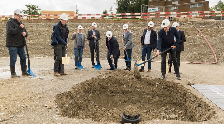Feierliche Grundsteinlegung für das Gewerbe- und Freizeitzentrum Gümligenfeld Center. (Bild: Implenia)