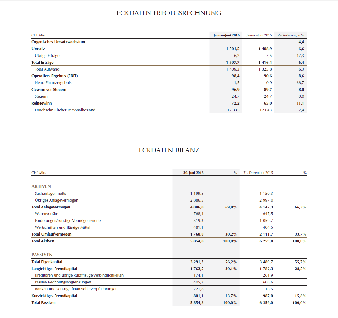 Einige der im Halbjahresbericht geäusserten Stellungnahmen beruhen auf zukunftsbezogenen Annahmen. Die tatsächlichen Ergebnisse können davon aus unterschiedlichen Gründen abweichen. Hierzu zählen unter anderem Faktoren wie allgemeine Wirtschaftsbedingungen, Schwankungen im Währungs- und Rohstoffsektor, sowie regulatorische Entwicklungen. Vorausschauende Aussagen in diesem Bericht werden weder aktualisiert noch revidiert. Der Halbjahresbericht erscheint in Deutsch und Englisch. Die deutsche Textversion ist bindend.