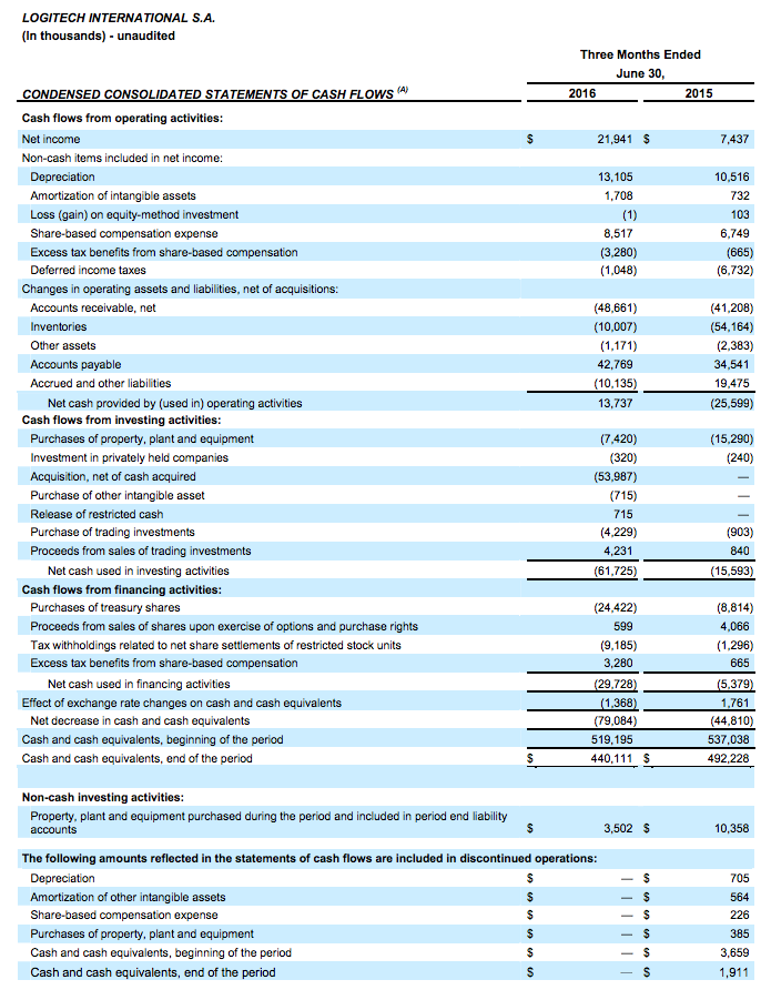 Logitech has made its prepared written remarks for the financial results teleconference available online on the Logitech corporate website at http://ir.logitech.com.
