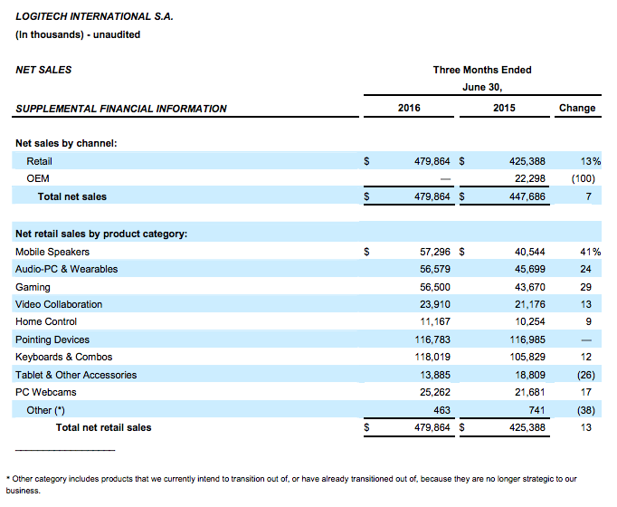 Logitech Accelerates with Best Retail Sales Growth in Over Five Years, Up 13% Donnerstag, 28. Juli 2016 - 05:55