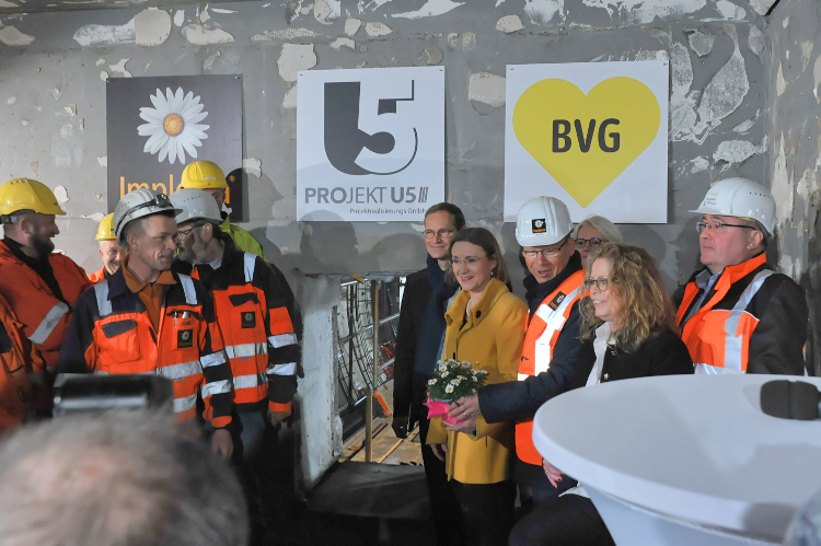 Dietlikon, 22. März 2017 – Für Implenia ist die U5 eines der bedeutendsten laufenden Infrastrukturprojekte im europäischen Markt. Heute stand beim U-Bahnbau in Berlins Mitte ein echter Durchbruch an: Mitarbeitende von Implenia durchschlugen die letzte Betonwand, die den neuen, ebenfalls von Implenia gebauten, U5-Tunnel noch vom U-Bahnhof Brandenburger Tor getrennt hatte. Dies geschah im Beisein des Regierenden Bürgermeisters Michael Müller, von Dr. Sigrid Evelyn Nikutta, Vorstandsvorsitzende und Vorstand Betrieb der Berliner Verkehrsbetriebe (BVG), der Geschäftsführer der Projektrealisierungs GmbH U5, Ute Bonde und Jörg Seegers, sowie von Stefan Roth, Geschäftsleitung Implenia Deutschland und Österreich. Damit ist die Lücke zwischen U55 (zwischen Hauptbahnhof und Brandenburger Tor) und der traditionellen U5 (zwischen Alexanderplatz und Hönow) geschlossen.