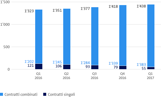 Fatturato da contratti per offerte combinate (in milioni di CHF) | 603 | 676 | 12,1% |