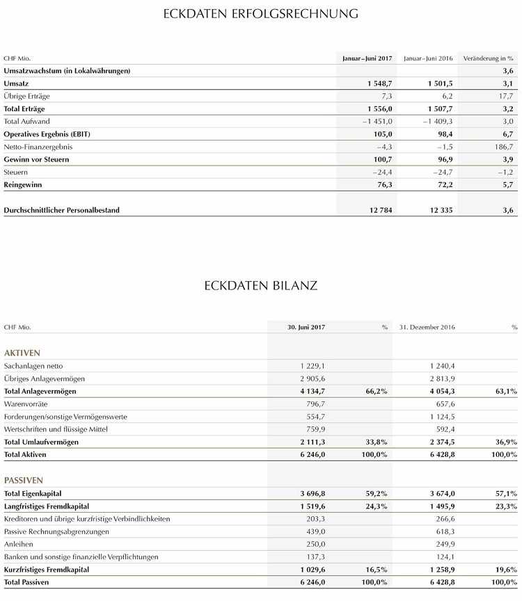 - Operativer Gewinn (EBIT) in CHF 105,0 Mio.; EBIT-Marge: +6,8% (+20bp)