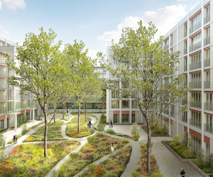 Auf dem Grundstück von Implenia in Winterthur Neuhegi entsteht mit KIM eine u-förmige Wohnüberbauung mit halböffentlichem Gartenhof (hier abgebildet) sowie ein Büro- und Gewerbegebäude. (Bild: BDE Architekten, Winterthur)