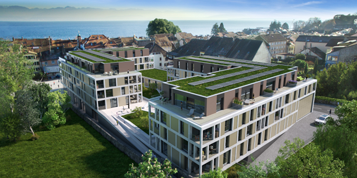 In der neuen Überbauung an der Rue du Temple in Rolle im Kanton Waadt entstehen auf einer Bruttofläche von rund 9000m2 neben Mietwohnungen auch Gewerbe- und Büroflächen sowie ein öffentliches Parkhaus mit knapp 300 Parkplätzen. Bereits als Mieter der neuen Liegenschaft stehen ein Detailhändler sowie ein gemeinnütziger Verein fest. Mit der zentralen Lage direkt bei der Altstadt und der Nähe zum Genfer See entsteht das Projekt in der wirtschaftlich dynamischen Region zwischen Lausanne und Genf. Die Baubewilligung für das Objekt wurde Mitte Februar 2018 erteilt. Die Ausführungsarbeiten werden voraussichtlich im Sommer aufgenommen.