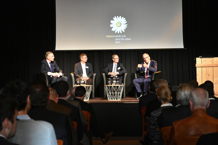 Im Anschluss an die Studienpräsentation diskutierte eine Expertenrunde, bestehend aus Implenia CEO Anton Affentranger, Roger Naumann, Real Estate Global COO & Head Sustainability bei der Credit Suisse, und Peter Richner, Stellvertretender Direktor und Leiter Forschungsschwerpunkt Energie bei der EMPA, das Thema Nachhaltigkeit im Bestand.