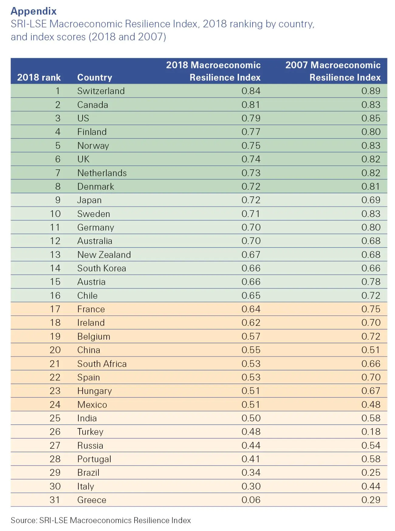 - Switzerland, Canada and the US have highest economic resilience; euro area resilience has decreased most since 2007