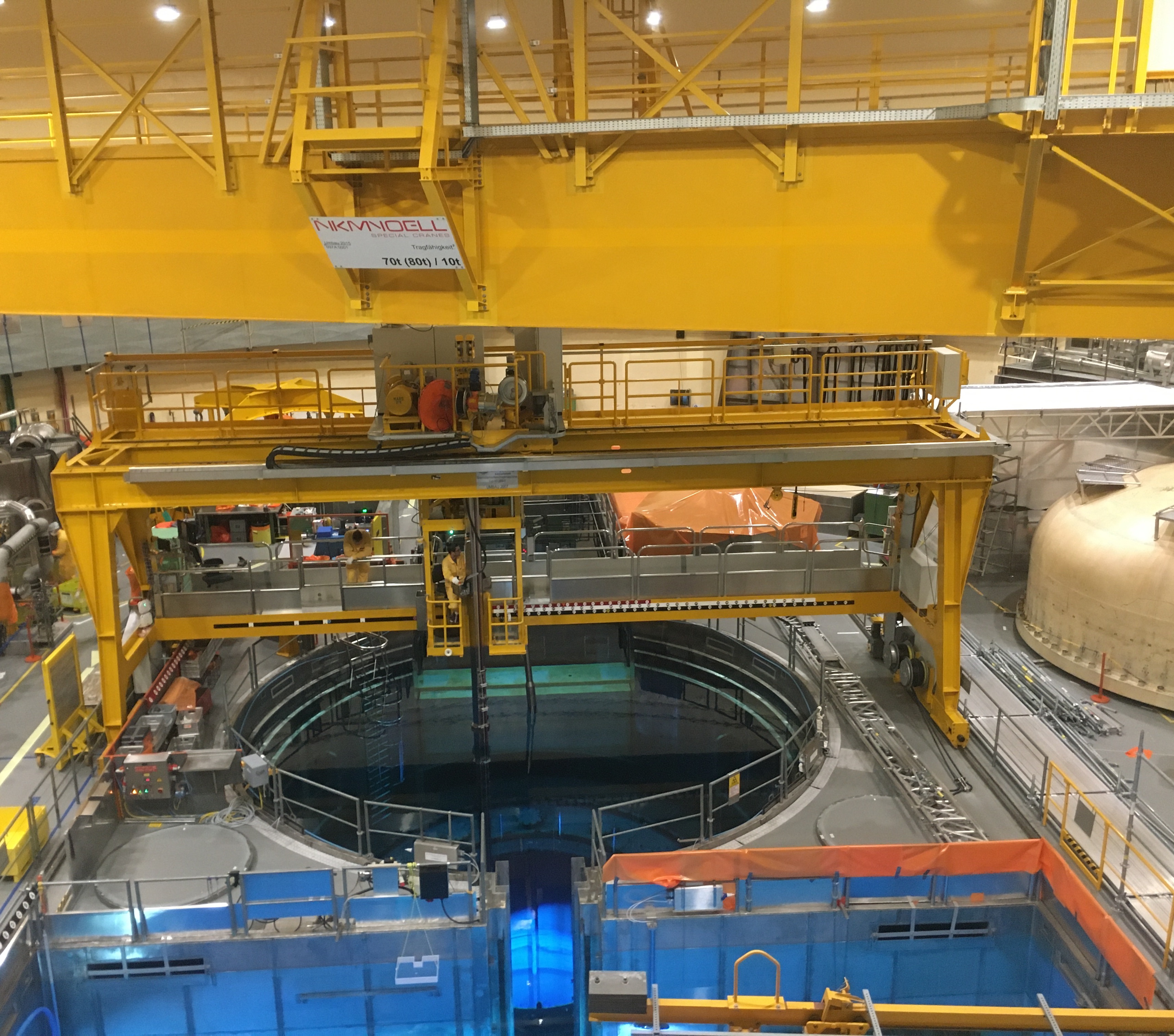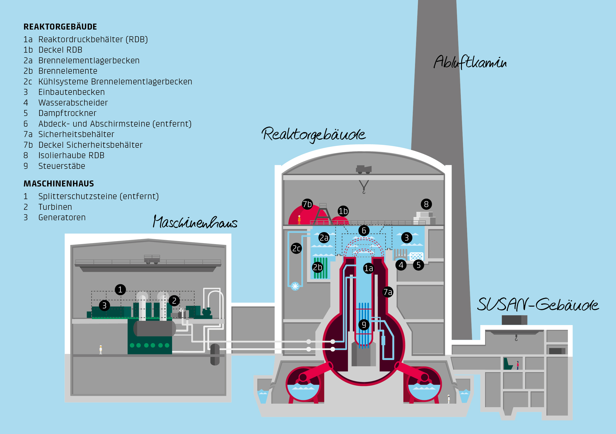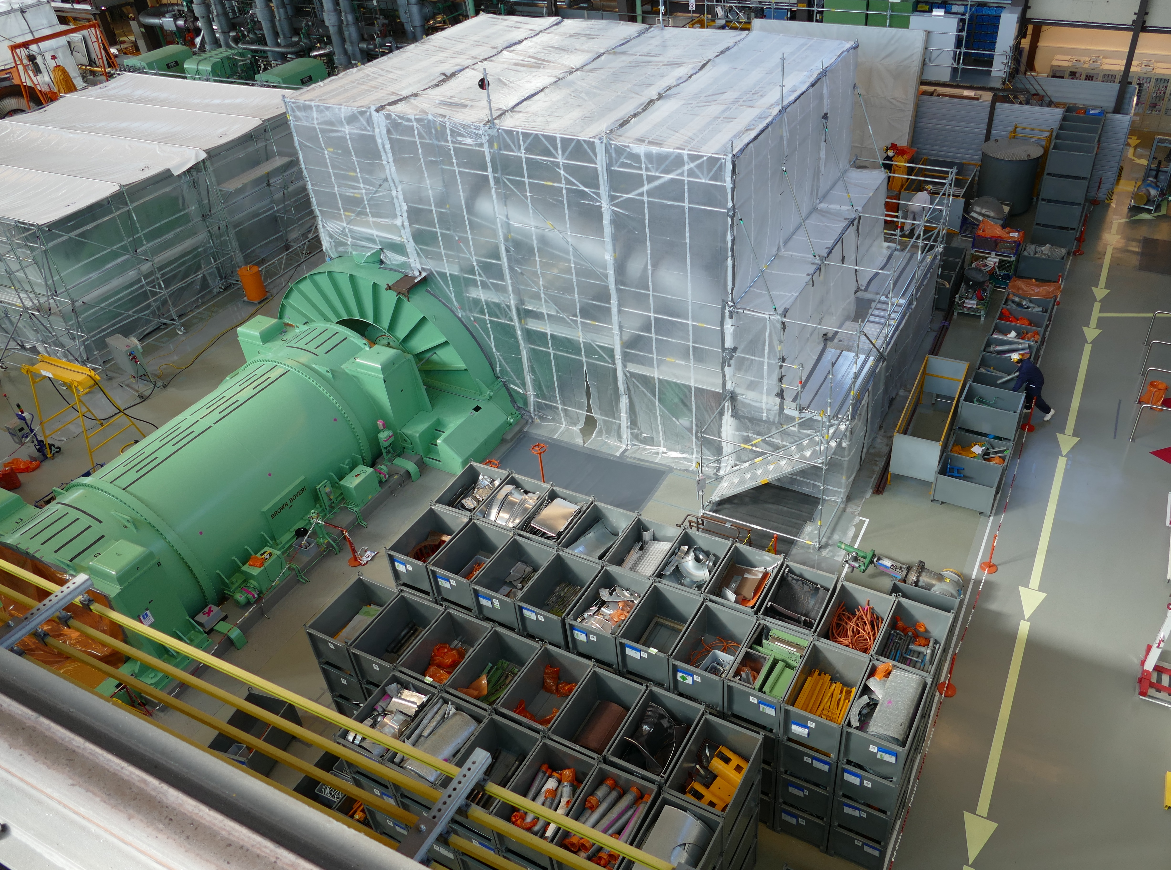 Nach der endgültigen Einstellung des Leistungsbetriebs des Kernkraftwerks Mühleberg (KKM) am 20. Dezember 2019 hat der Rückbau am 6. Januar 2020 plangemäss begonnen. Arbeiten im Reaktorgebäude Ende März 2020 wurde der Reaktordruckbehälter geöffnet und sämtliche Brennelemente ins Brennelementlagerbecken verlagert. Der Reaktordruckbehälter wurde erst drei Monate nach der endgültigen Einstellung des Leistungsbetriebs geöffnet, weil die Radioaktivität in dieser Zeit bereits um einen Faktor 1'000 abgenommen hat. Die Brennelemente kühlen in den kommenden Jahren im Brennelementlagerbecken weiter ab, bis sie ins Zwischenlager in Würenlingen transportiert werden können. Im Reaktorgebäude wurden ausserdem die Abdeck- und Abschirmsteine über der Reaktorgrube und beim Sicherheitsbehälter entfernt und zerlegt. Diese Betonelemente haben ein Gesamtgewicht von rund 400 Tonnen. Sie dienten während des Betriebs dem Schutz vor Radioaktivität. In den kommenden Monaten werden im Reaktorgebäude der Deckel des Sicherheitsbehälters und die Isolierhaube des Reaktordruckbehälters zerlegt. Ausserdem wird das 2016 zusätzlich eingebaute Kühlsystem des Brennelementlagerbeckens in ein Sicherheitssystem umgebaut. Diese Arbeiten dauern bis Ende September 2020. Ihr Abschluss gilt als «endgültige Ausserbetriebnahme» des KKM. Arbeiten im Maschinenhaus Auch im Maschinenhaus sind die Arbeiten Anfang 2020 unmittelbar gestartet. Hier wird Platz geschaffen, um das zurückgebaute Material vor dem Abtransport reinigen und freimessen zu können. Dafür werden Systeme und Anlageteile, die nicht mehr gebraucht werden, ausser Betrieb genommen und demontiert. Dazu zählen beispielsweise die Turbinen und Generatoren. Während des Betriebs standen 165 Splitterschutzsteine um die Turbinen. Sie hätten bei einer mechanischen Störung vor Turbinensplittern geschützt. Diese Betonblöcke mit einem Gesamtgewicht von rund 1'300 Tonnen wurden freigemessen und aus dem Maschinenhaus entfernt.