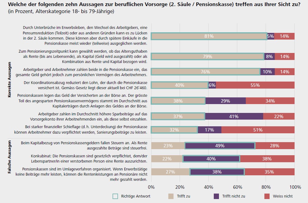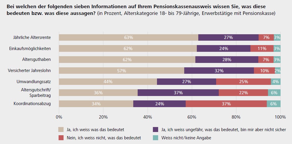 - Ein Grossteil der Befragten versteht die Funktionsweisen der 2. Säule kaum