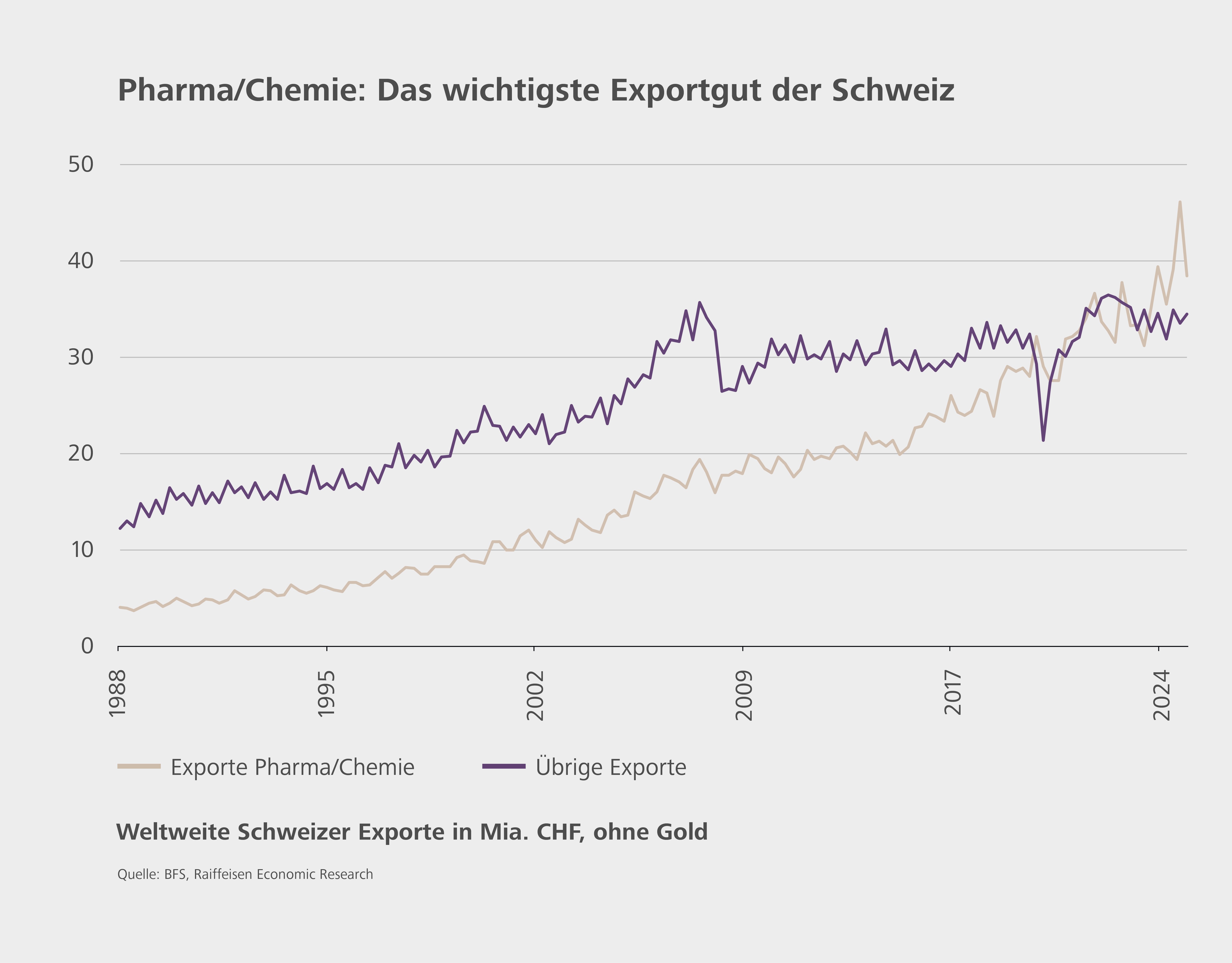 St.Gallen, 23. September 2025. Die Pharmaindustrie ist der Wachstumsmotor der Schweiz. Sie erwirtschaftet fast 10 Prozent des Bruttoinlandprodukts, trägt seit 2020 rund 40 Prozent zum jährlichen Wirtschaftswachstum bei und generiert über die Hälfte aller Exporte. Besonders stark ist die Abhängigkeit vom US-Markt. Rund 28 Prozent der Pharmaexporte gehen in die USA. Gemäss den Ökonomen von Raiffeisen Schweiz spiegelt dieser Wert die tatsächliche Bedeutung nicht wider: Rund die Hälfte des Handelsüberschusses der Pharmabranche entfällt auf die USA und viele Firmen erzielen dort den Grossteil ihres Umsatzes. Damit sind die USA Schüsselmarkt und Achillesferse zugleich – denn der Markt steht unter starkem politischem Druck. Eine Analyse der Ökonomen von Raiffeisen Schweiz zeigt, welche Faktoren die Abhängigkeit vom US-Markt prägen und wie sich der grosse politische Druck auf die hiesigen Pharmaunternehmen auswirkt.