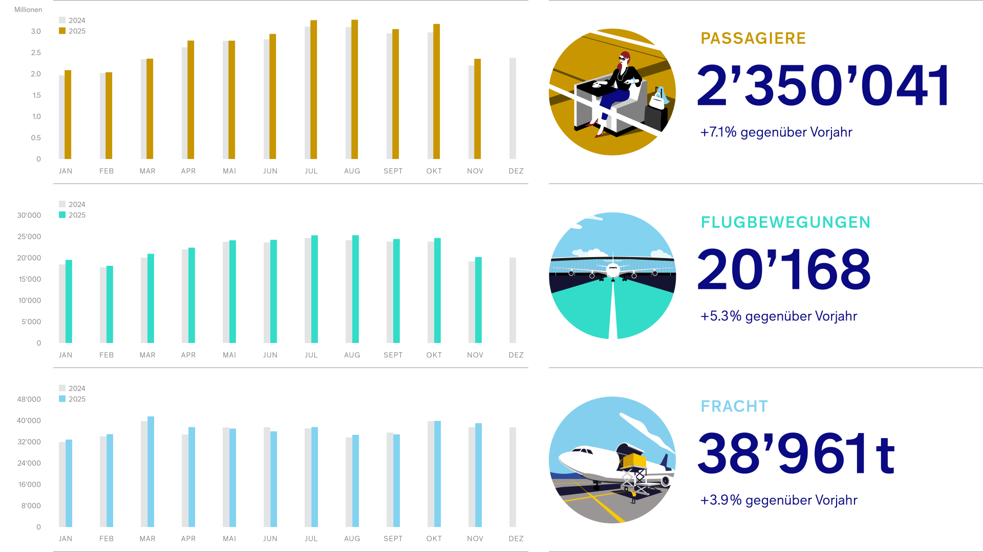 Flughafen Zürich Verkehrszahlen November 2025 Mittwoch, 10. Dezember 2025 - 17:54